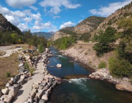 Clear Creek is an excellent place for beginners both because of the number of fish you can catch and how accessible and close it is for everyone to access. Â Parallel to I-70 from Georgetown to Idaho Springs, Clear creek has over 20Â miles of fishable waters containing brown and rainbow trout. Â There are some brook and cutthroat trout but the majority of fish are browns and rainbows. Â Due to excessive mining, the insect life suffers causing the fish to get no larger than 15” in most places in this section. Â Most fish will be in the 5” to 13” range. Â What they lack in size, they make up for in number. Â It’s not impossible to catch over 50 fish in a day on this section. Â With a good presentation and a dry-dropper rig, you can slay fish after fish. Â Pocket water makes up the majority of the river, but there are some notable pools and runs that can hold fish as well. Â Don’t overlook any rock or holding water as they often contain a fish willing to attack your dry fly as soon as it hits the water.